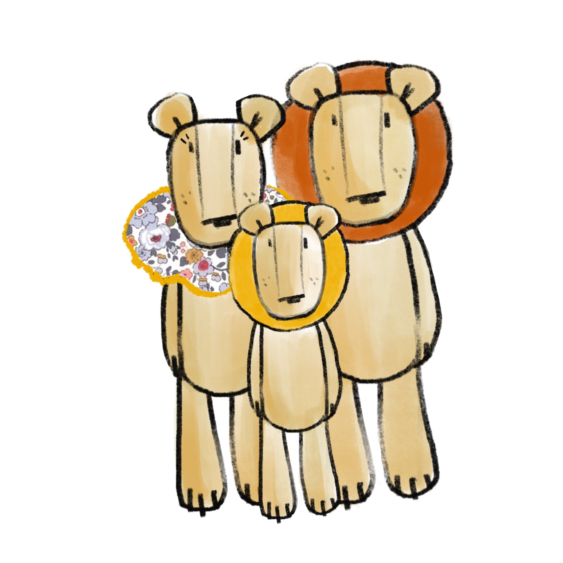 L'histoire de Louis, Emma et Léo, famille des lions
